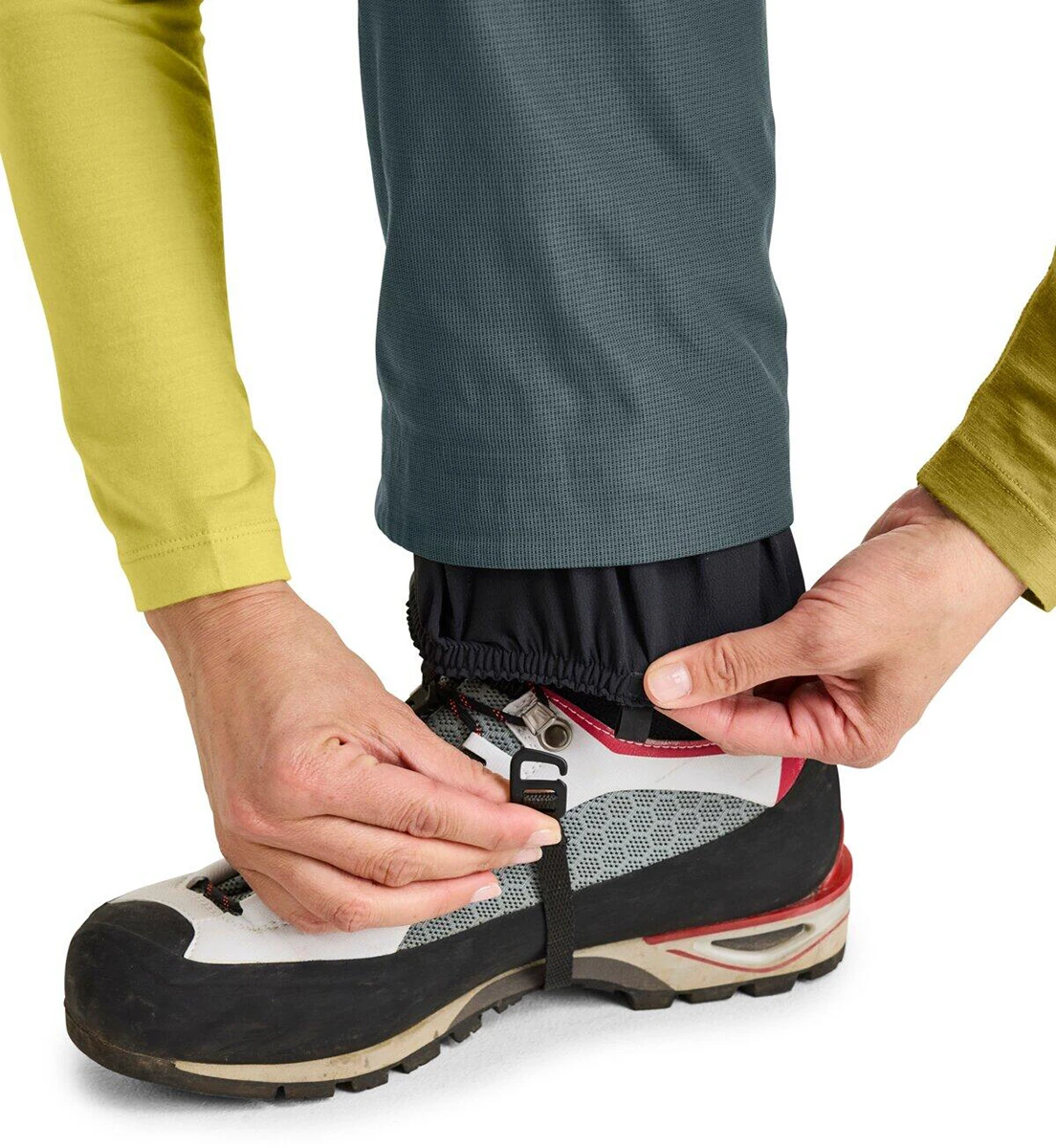 Na kotnících je vyztužení proti hranám lyží nebo mačkám. Mají 3/4 rozepínání nohavic pro dodatečné odvětrání.