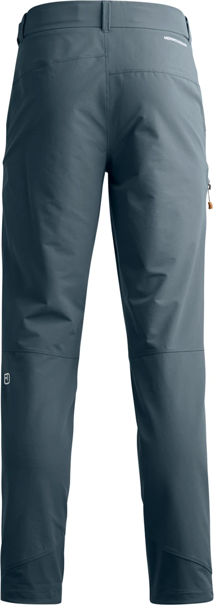 Ortovox Seceda Softshell Pants Men's: pánské softshellové kalhoty určené pro vysokohorskou turistiku, alpinismus. Jsou vyrobené z extrémně odolného softshellu Merino Shield Tec Soft, je strečový ve všech čtyřech směrech. Díky strečovému materiálu jsou kalhoty pružné a velmi pohodlné, jsou prodyšné a poskytnou ochranu před větrem a deštěm, májí DWR úpravu, která odpuzuje vlhkost a špínu.