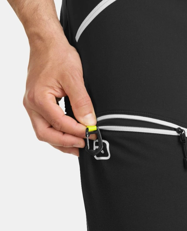 1 stehenní kapsa s přídavnou lehkou karabinou (ochrana proti ztrátě lavinového transceiveru)