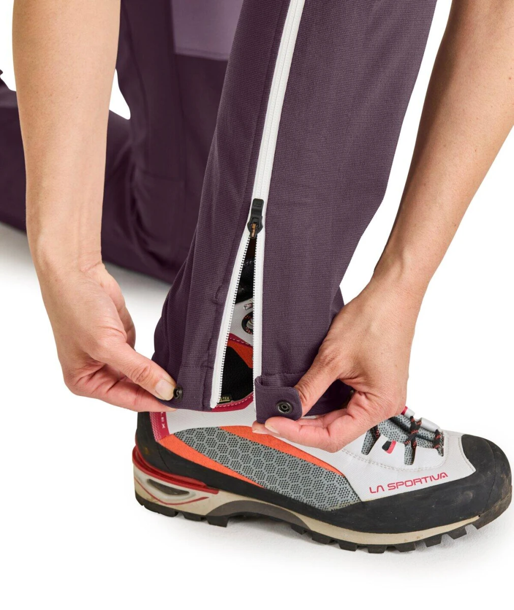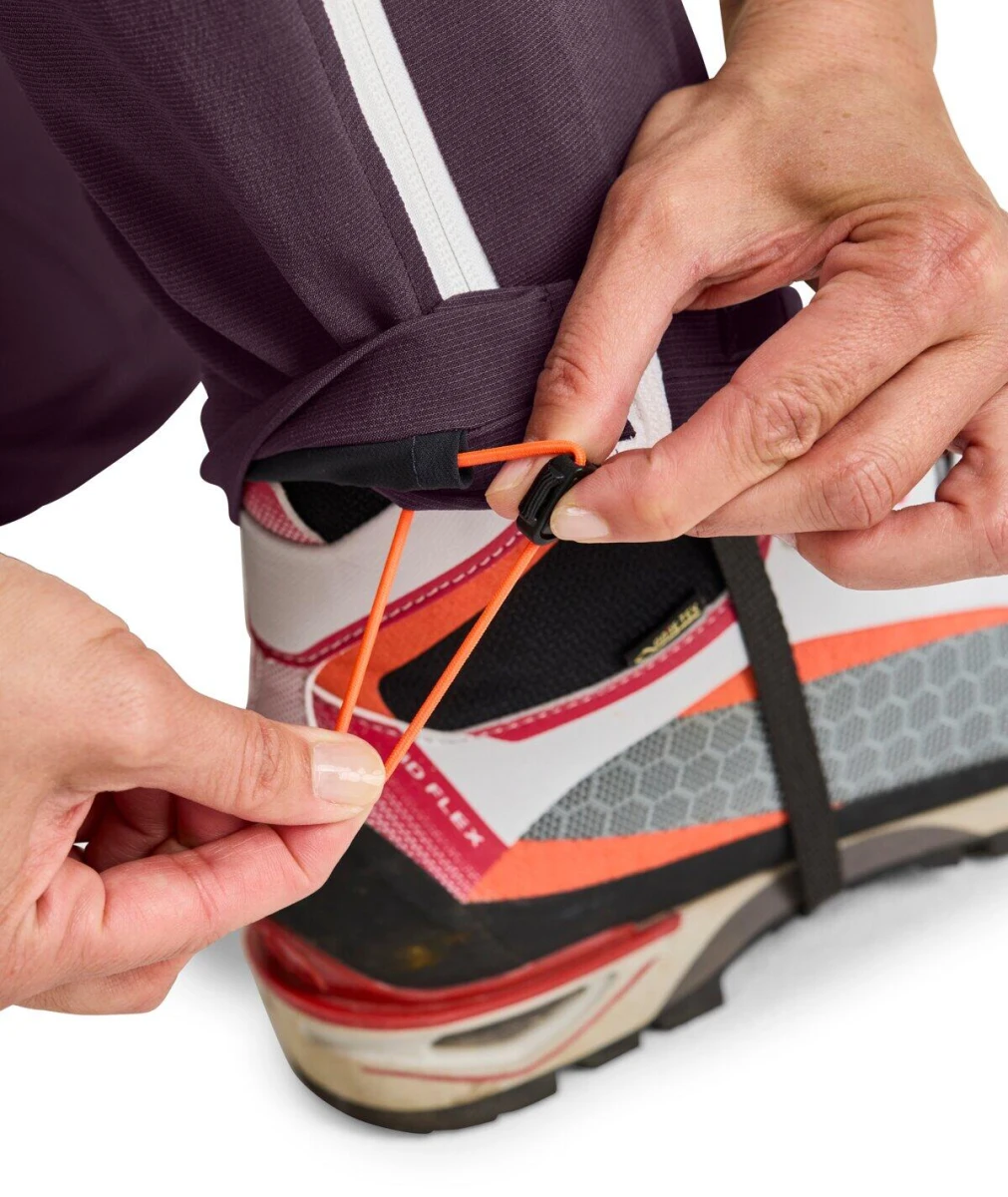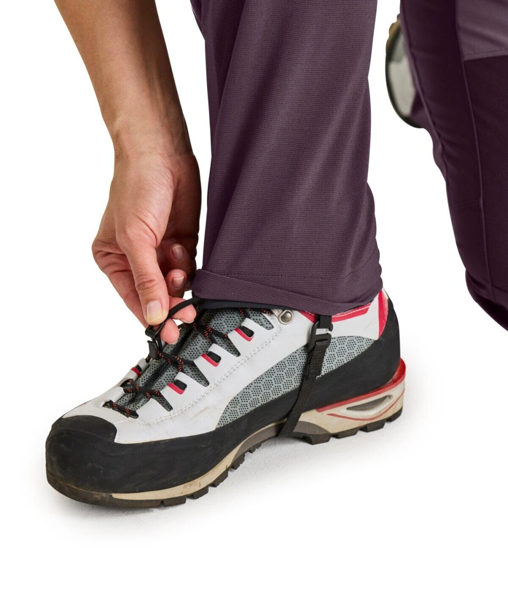 Nohavice mají udělané tak, aby nebyly nutné návleky a kalhoty se daly zafixovat dyneemovými pásky pod botou. Materiál je pružný.