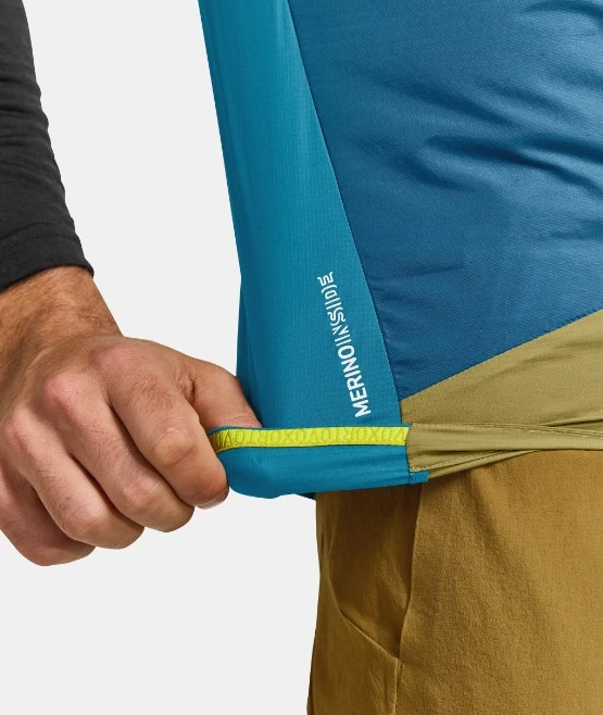Výsledkem je lehká, větruodolná pánská vesta. Podšívka je vyrobena z merino vlny, zlepšuje termoregulaci a je příjemná na těle. Obsahuje 55 % merino vlny.