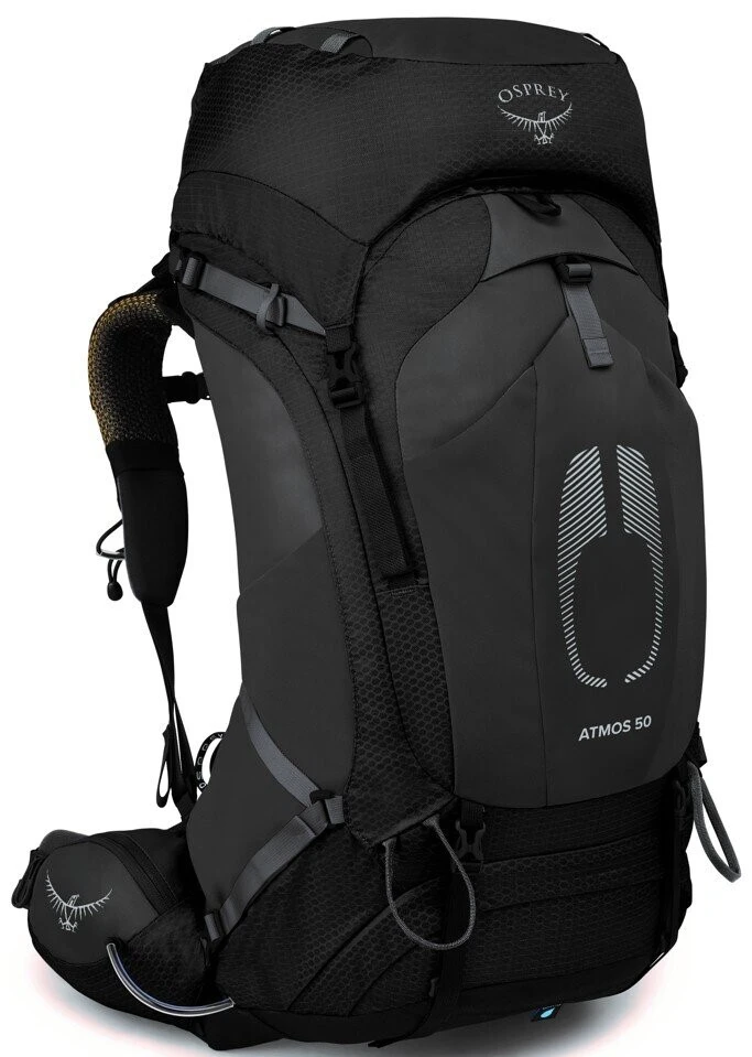 Osprey Atmos AG 50: je navržen pro velmi komfortní cestování, turistiku, kemping, kdy vysoký komfort je daný velmi mnoha prvky nastavení zádového systému. Ten je navíc tvořený síťkou, díky tomu výborně odvětrává.