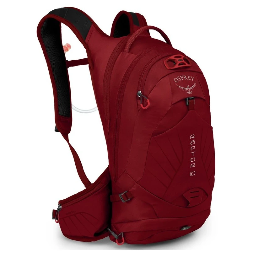 Osprey Raptor 10 II: je navržen pro cyklistiku, má jednak možnost upevnění cyklistické přilby, součástí je i organizér na pumpičku, duši a opravnou sadu. Ve spodní části najdete dělenou kapsu ToolWrap na nářadí.