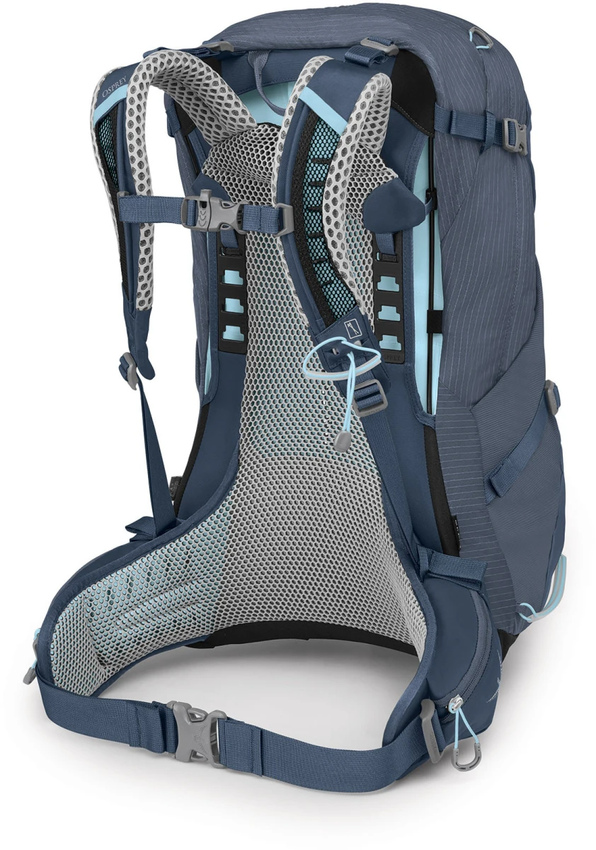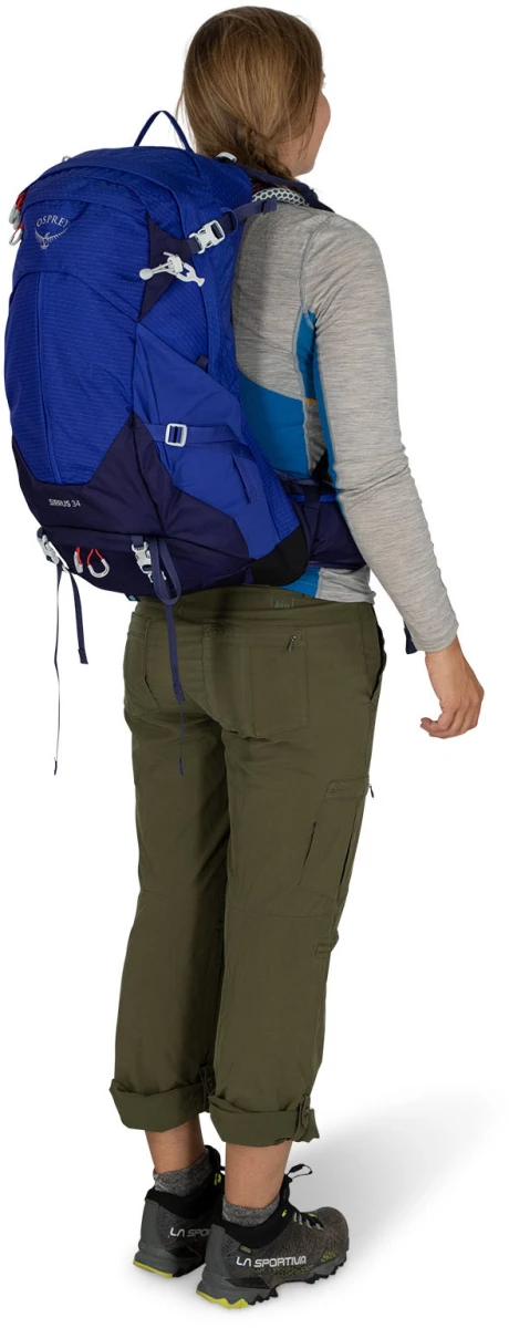 Osprey Sirrus 34 : je pohodlný dámský turistický batoh pro úsporné cestovatelky. Má dvě komory. Zádový systém AirSpeed je tvořený síťkou, díky tomu velmi prodyšný a záda se tolik nepotí a případně rychle schnou.