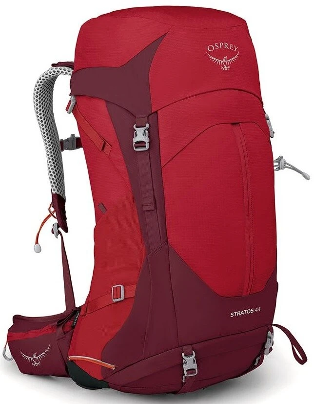 Osprey Stratos 44: je pohodlný turistický batoh pro úsporné cestovatele. Má dvě komory. Zádový systém AirSpeed je tvořený síťkou, díky tomu velmi prodyšný a záda se tolik nepotí a případně rychle schnou.
