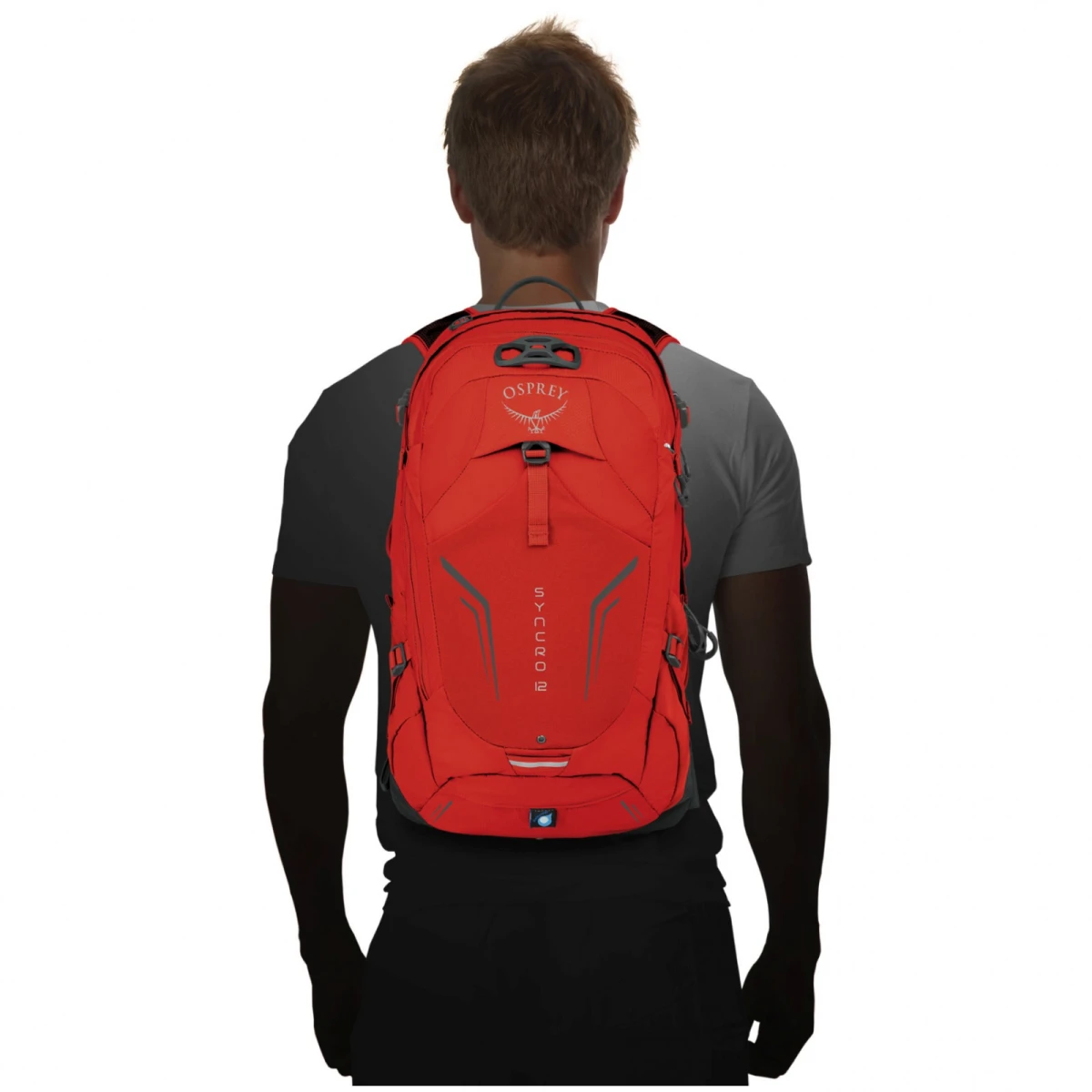 Reflexní grafika, upevňovací bod pro LED světlo a integrovaný závěsný systém High-Vis pak zvýší vaši viditelnost. Cyklistický batoh Osprey Syncro 12 je  kompatibilní s rezervoáry Hydraulics.