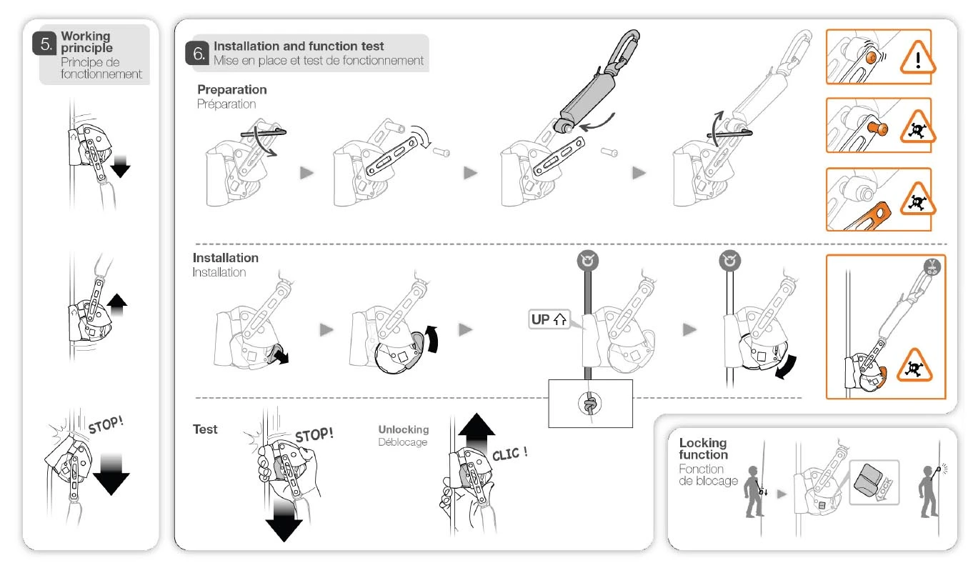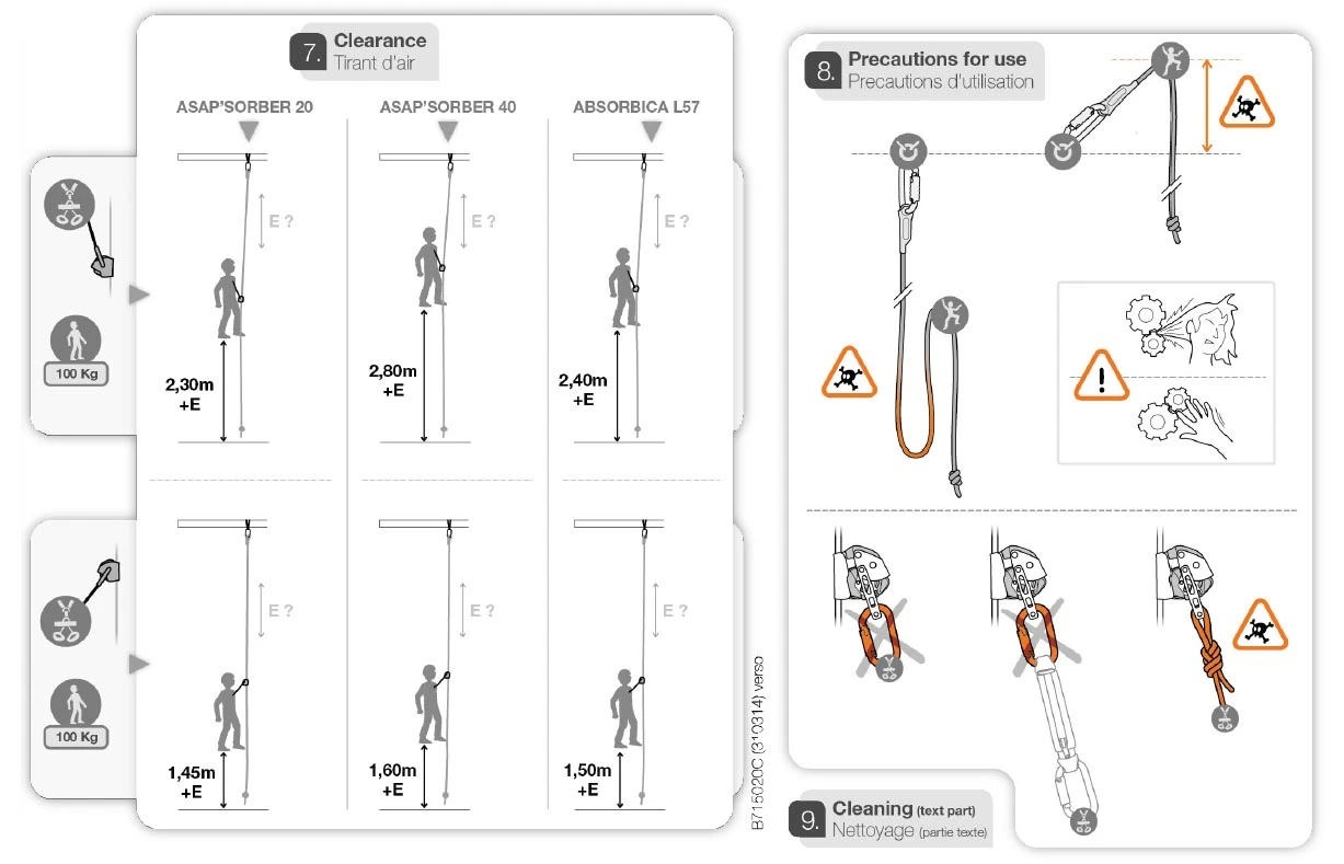 Zachytávač pádů Petzl Asap Lock je certifikován pouze na použití s tlumičem pádu Petzl.
