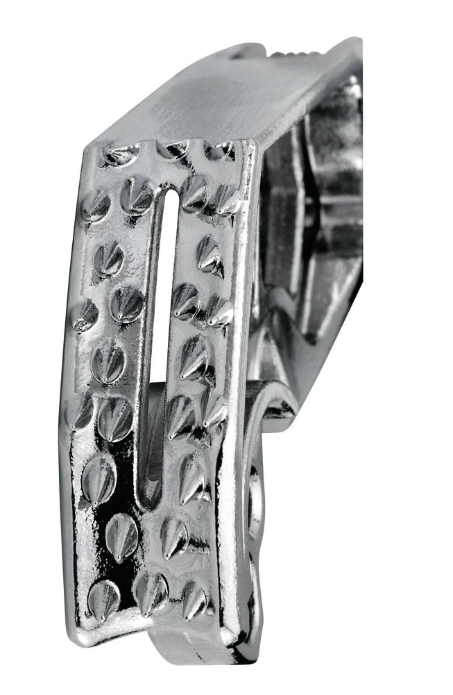 Západka jumaru je z chromové oceli je opatřena šikmými zuby a výřezem pro vypadávání případných nečistot, aby bylo zaručeno dokonalé blokování i na mokrých, namrzlých a zablácených lanech.