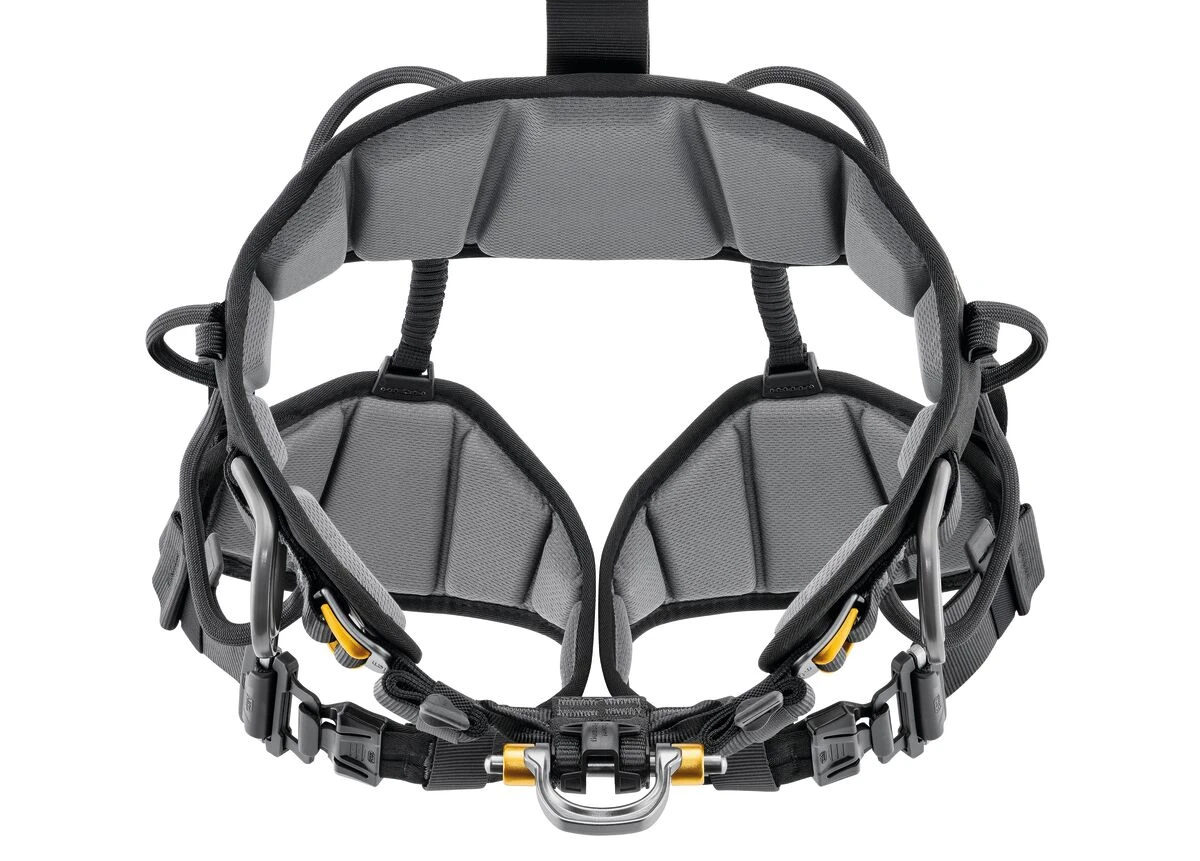 Je vybavený zádovým připojovacím bodem a samozřejmě i předním bodem pro zachycení pádu a i připojovacím bodem. Zajímavostí jsou textilní boční připojovací body pro polohování.