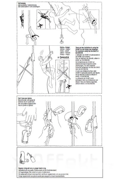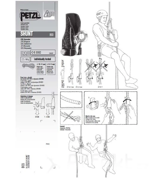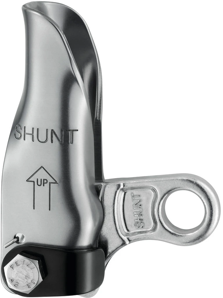 Blokant Petzl Shunt : je geniální blokant určený pro samojištění při lezení TR. Pro tento případ je nutné zatížit volné prameny lana. Další možnost je použití Petzl Shunt při slaňování, kdy se umísťuje pod slaňovací brzdu pro sebejištění.
