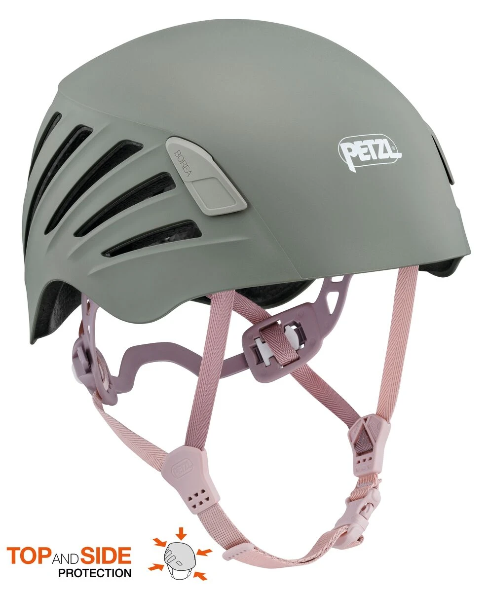 Je vyrobena z lehké a odolné skořepiny je maximálně pohodlná. Výstelka uvnitř helmy Pohlcuje nárazy. Tuto výstelku je možné vyjmout a umýt. Ze stran přilby Petzl Borea jsou větrací otvory. Na klipy lze přidat čelovky. Mimořádně snadno se zapíná a vypíná – patent firmy Petzl.