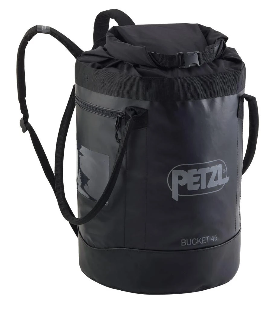Vak na vybavení Petzl Bucket 45 - je oděruvzdorný obal na lano a pracovní vybavení o objemu 30 l. Po straně kapsy a poutka. Minimum švů, bytelný materiál.