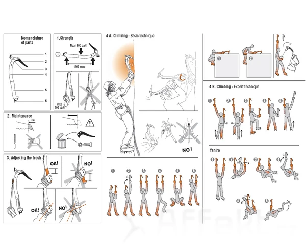 Je použit nový hrot Petzl Dry, který je určen pro drytoolingové lezení. Rukojeť má nastavitelnou velikost pro různé ruce.