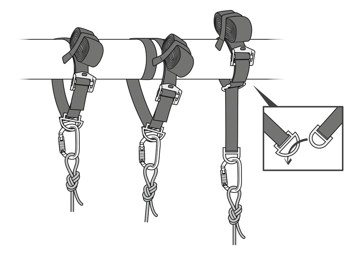 Petzl Connexion Vario: je délkově nastavitelný kotvící popruh. Jde využít pro fixaci lana, ukotvení pracovníka, případně na polohování. Má dvě kované ocelové připojovací oko. Nabízí několik konfigurací pro zřízení kotvícího bodu přímo nebo kolem vhodné konstrukce.