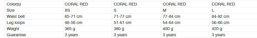 U sedáku jdou nastavit i nohavičky. To je výhodné zejména pro lezce, kteří sedák používají v létě i zimě. Je lehký a pohodlný s polstrovánými nožními popruhy a pásem, má dostatek poutek na materiál. Nastavitelné přezky DoubleBack. Možnost připnout 3 nosiče materiálu CariTool.