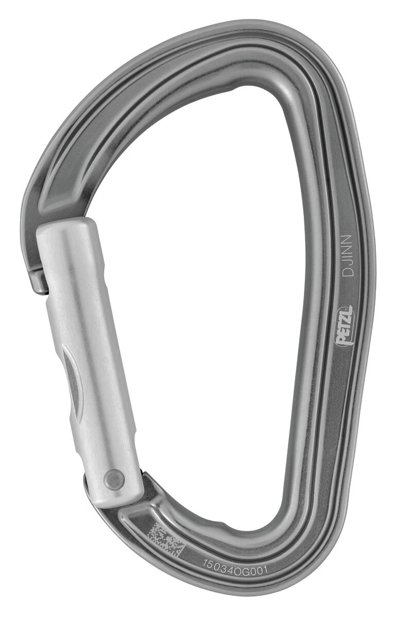 Petzl Djinn Straight : je postupová karabina, kterou využijete pro postupové jištění, případně na materiál. Má keylock aby se na zoubku nezachytávaly stopery nebo smyčky.
