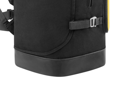 - Boční klopa s vyztuženou látkou může být použita k ochraně nosné zóny (ramenní popruhy a zádový panel) při přenášení, zavěšení nebo položení batohu na zem