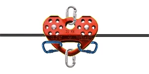 Kladka Petzl Tandem: je dvojitá kladka sloužící pro přelanění na nylonovém laně. Samomazná kluzná ložiska zajišťují vysokou účinnost. Díky velkému otvoru na těle kladky, který pojme až tři karabiny, má kladka široké možnosti využití.