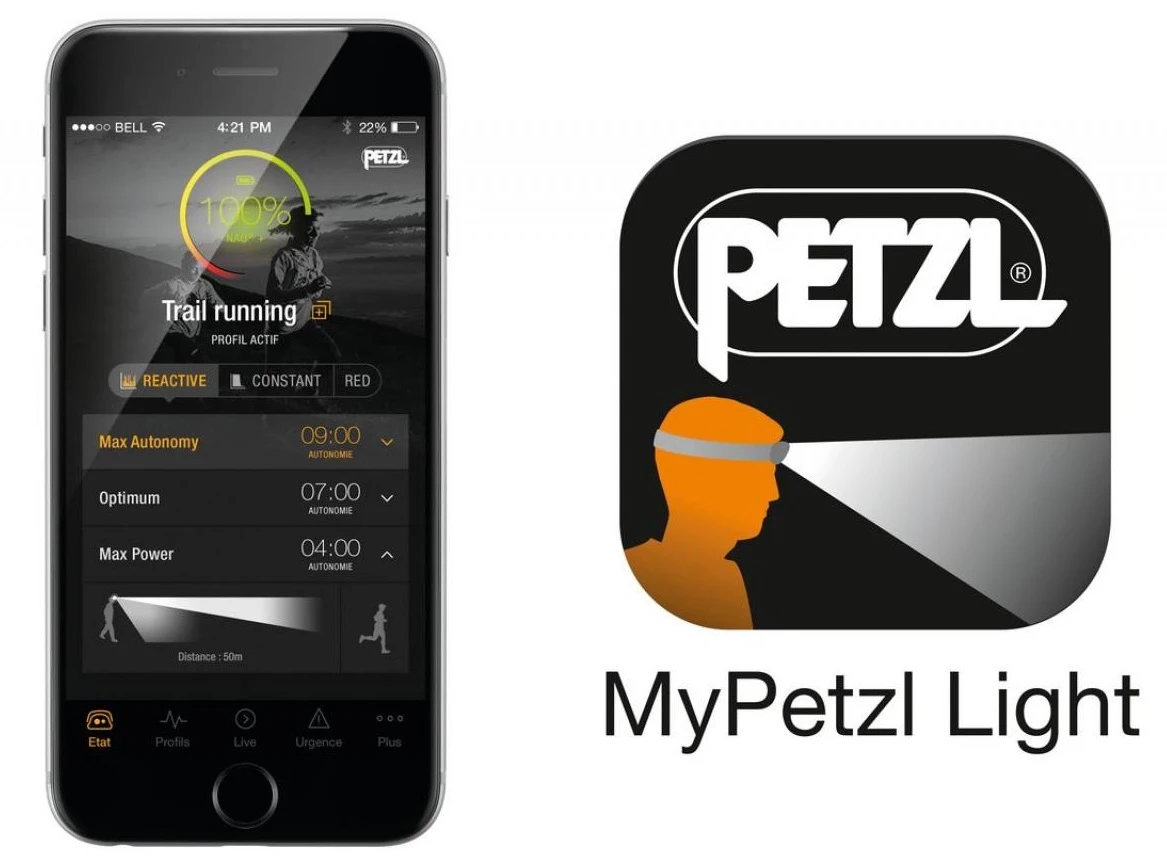 Čelovka se dá jednoduše propojit s vaším smartphonem přes připojení bluetooth. Díky aplikaci MyPetzl Light (zdarma ke stažení na Apple Store a Play Store), si uživatel může kdykoliv přes svůj chytrý telefon kontrolovat stav akumulátoru a zbývající dobu svícení, upravovat nastavení výkonu a výdrže. Můžete si tak vytvořit vlastní profily, a měnit je podle potřeby a prováděné aktivity.