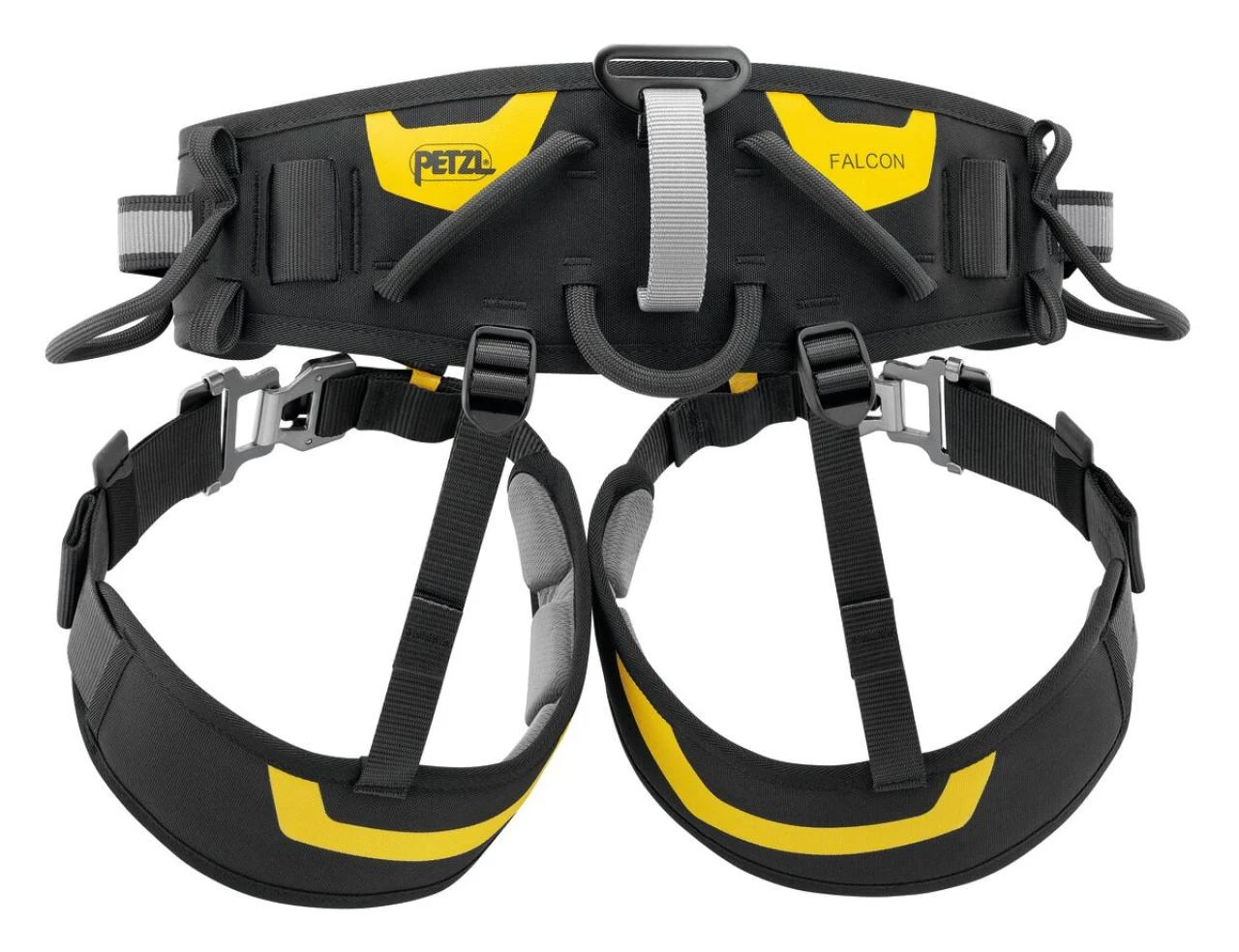 Petzl Falcon Ascent: polohovací úvazek pro záchranáře. Je měkce polstrovaný, pohodlný, ale má užší nohavičky i pás a neomezuje v pohybu. Lze používat s hrudním blokantem Petzl CROLL v kombinaci s ramenními popruhy SECUR nebo hrudním postrojem Petzl TOP CROLL (připojovací bod na zadní straně sedacího postroje).