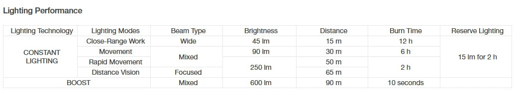 Čelovka je vybavena technologií CONSTANT LIGHTING, která poskytuje konstantní svícení po celou dobu používání