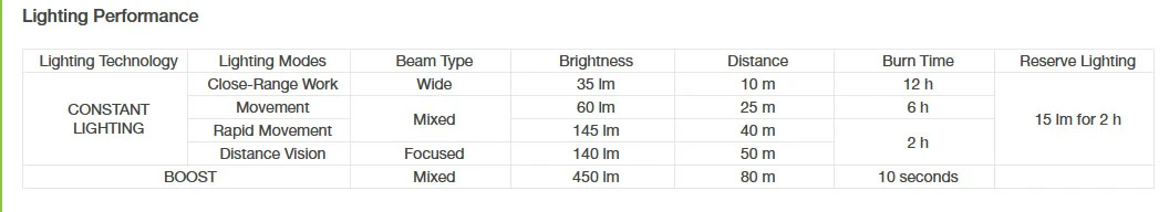 Čelovka je vybavena technologií CONSTANT LIGHTING, která poskytuje konstantní svícení po celou dobu používání