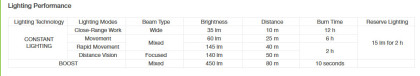 Klíčové vlastnosti této čelovky je velká mechanická odolnost, voděodolnost, chemická odolnost. Má však i solidní světelný výkon. Po celou dobu svícení má konstantní výkon. Je u ní možné použít baterky nebo dobíjecí článek (není součástí dodání.