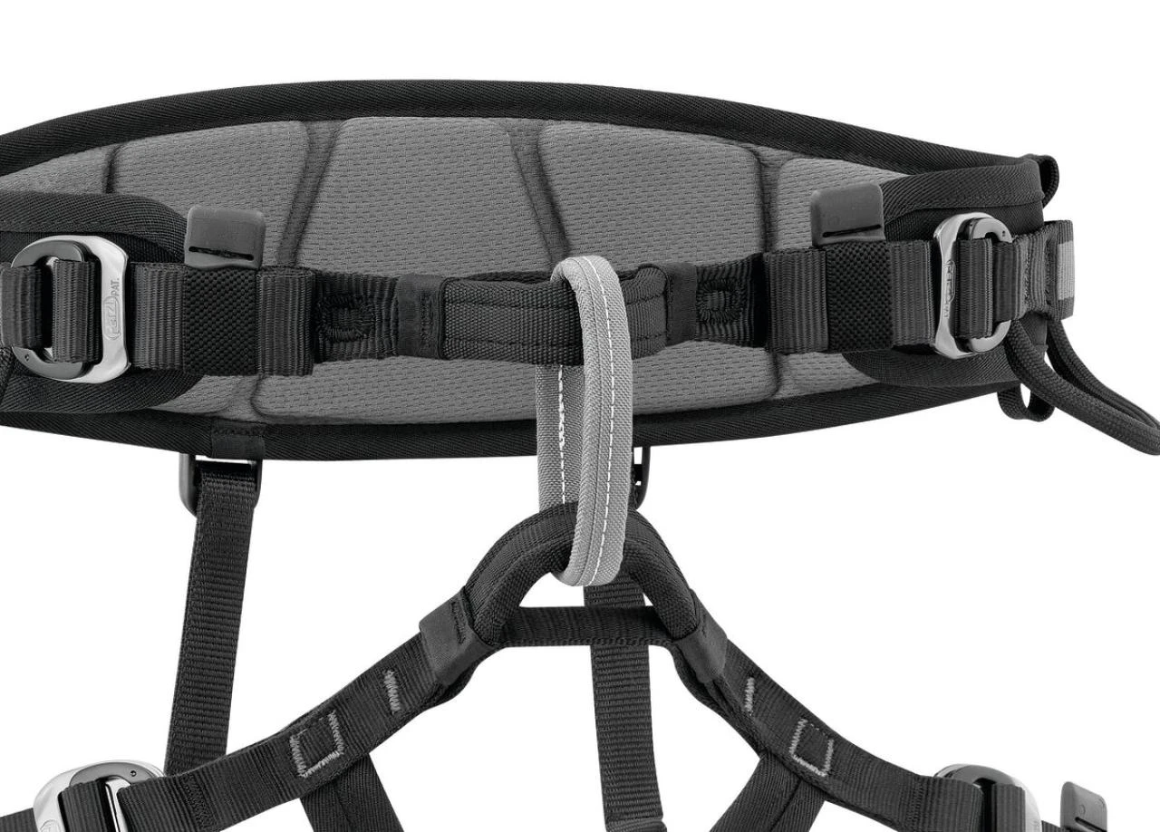 Přední připojovací bod tvoří připojovací most, který usnadňuje pohyb při lezeckých technikách a umožňuje pohodlnou chůzi