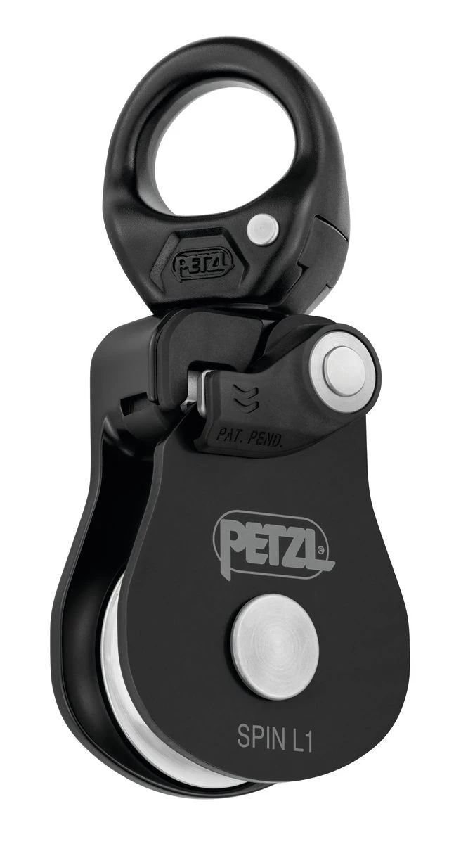 Petzl Spin L1: tato pracovní kladka s otočným závěsem. Lze ji otvírat i když je zavěšená, díky tomu neriskujete, že vám při používání nechtěně spadne. Máte ji stále nacvaknutou. Je navržena pro maximální jednoduchost při sestavování kladkostrojů.