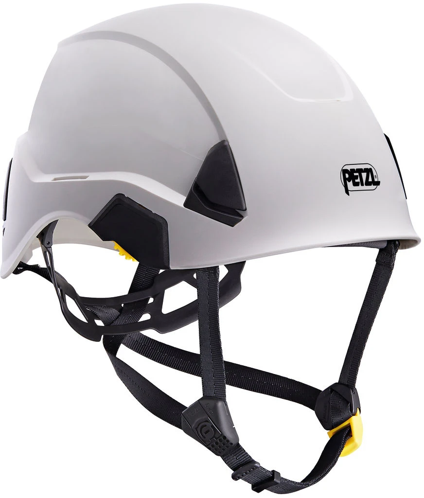 Petzl Strato: je pracovní přilba pro výškové práce s výbornou absorbcí nárazu pomocí deformací výstelky (EPP a EPS). Je určena pro použití v průmyslu, pro výškové pracovníky, revize ve výškách. Chrání před padajícími přeměty při pozemních pracích.