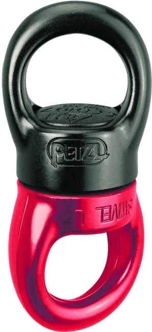 Otočný závěs Petzl Swivel L – otočná spojka s kuličkovým ložiskem. Nezpůsobuje kroucení lana. Pracovní zatížení spojky je 5000 N. Lze do něj zapnout až 3 karabiny.