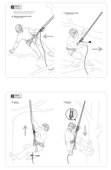 Petzl Zigzag: mechanický arboristický prusík určený pro arboristiku a práci v koruně stromů. Je vhodný narozdíl od klasického prusíku pro využití v každém počasí. Mokré lano mu nevadí. Funguje dál.