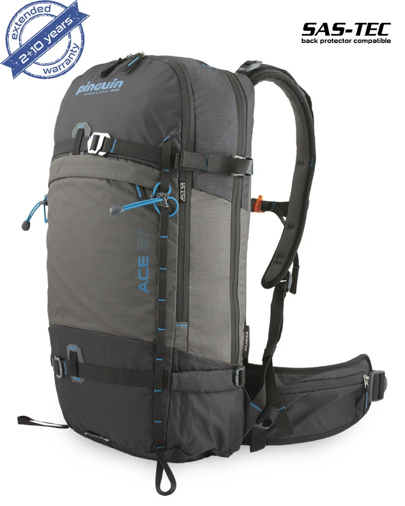 Pinguin Ace 27 - je primárně zimní batoh, je určený pro zimní aktivity jako je chůze na sněžnicích, freeride, skialpinismus… 2 komory, kdy jedna je na bundu, svačinu atd., druhá komora je na lavinové vybavení.