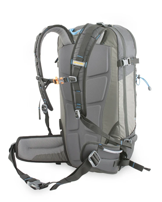 Má pevný zádový systém. Přístup do hlavní komory je přes zip okolo zádového systému, díky tomu nemáte zádový systém na sněhu.