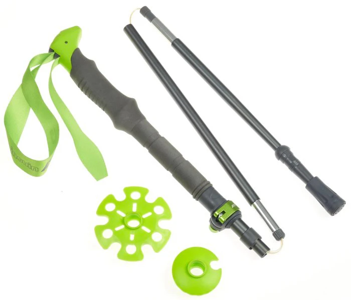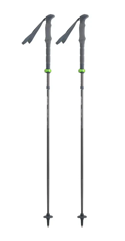 Jejich výborná sbalitelnost je dána systémem micro vario, kdy hole sbalíte díky lanku na délku 36 cm. Součástí holí je pár trekových a pár sněhových talířků, dále gumové kryty hrotu. Hrot je z trvanlivého karbidu Wolframu. Délku holí rychle a snadno upravíte pomocí fast locku.
