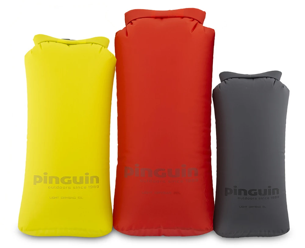 Pinguin Dry Bag: je voděodolný vak s rolovacím uzávěrem co ochrání vaše věci jak na vodě (uložíte si do něj věci, které chcete mít suché), tak při dešti (dáte do něj věci, a pak celý vak dáte do batohu a máte jistotu, že budou suché). Vak je vyrobený z lehkého materiálu, má podlepené švy. Různé velikosti a barvy.