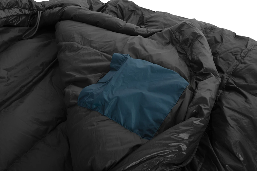 Zip je YKK a jezdec je navržen tak, aby se do něj nezachytávala látka. Součástí dodávky je skladovací obal (větší) a přepravní obal (menší). Uvnitř péřového spacáku je kapsa na doklady.