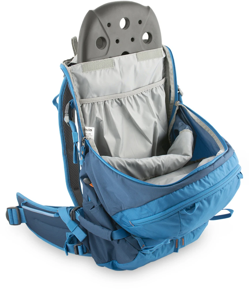 Přední kapsa je určena pro lavinovou sondu, lopatu. Možnost upnutí lyží, snowbardu, cepínů. Zádový systém je vyztužený polypropylenovou deskou s vyjímatelnou profilovanou duralovou výztuží.