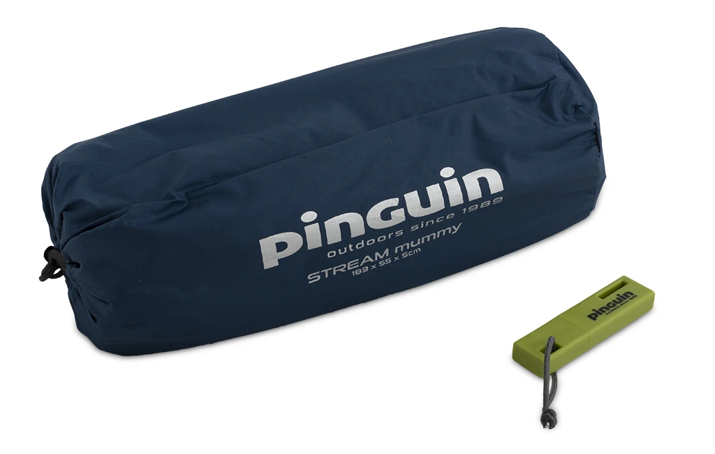 Nafukovací karimatka Pinguin Stream Mummy má mumiový tvar, tloušťku 5 cm, která vám dá dostatek komfortu v noci a i dobře odizoluje chlad. Je nafukovací, proto v batohu zabere minimum místa.