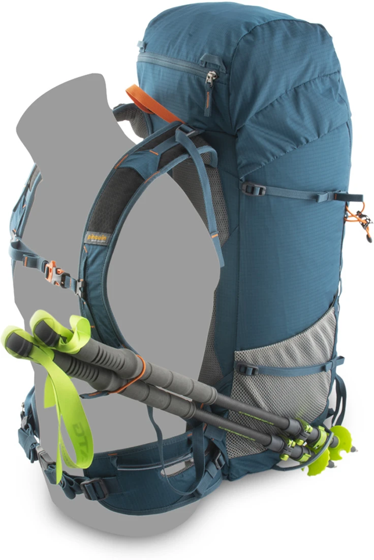 Má možnost odepnout bederní pás. Uvnitř batohu je tvarovatelná výztuž zad, která jde během přepravy vyndat. Z vrchlíku je možné vytvořit ledvinu. Batoh má boční kapsy.