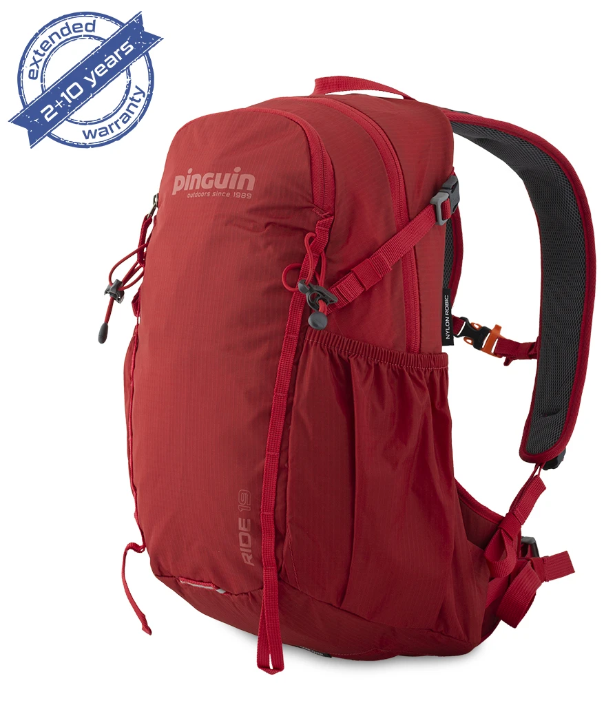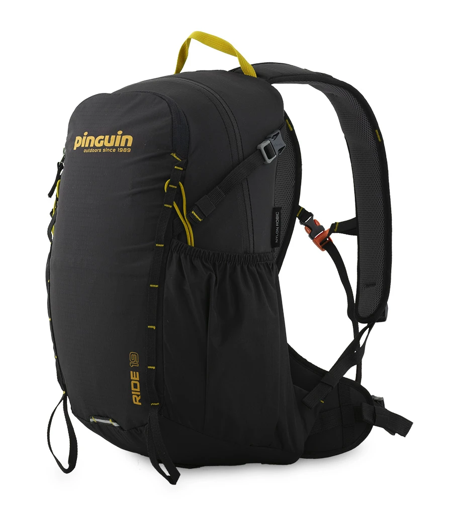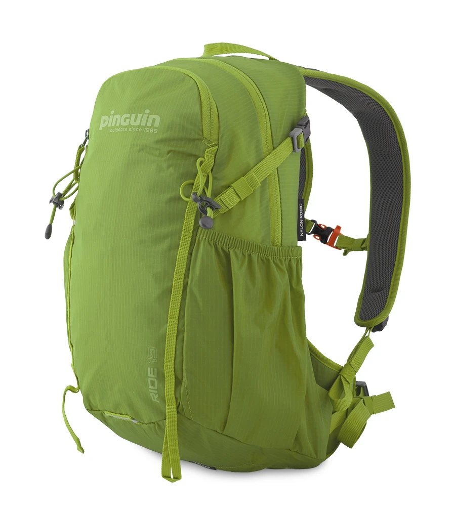 Batoh na kolo Pinguin Ride 19: je batoh určený primárně pro cyklistiku o velikosti 19 litrů s integrovanou pláštěnkou. Je to jednokomorový batoh s plněním přes zip. Má záda tvořené síťkou, proto dobře odvětrává. Proto má upravené i popruhy tak, aby k ramenům mohl vzduch.