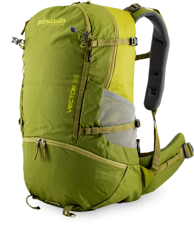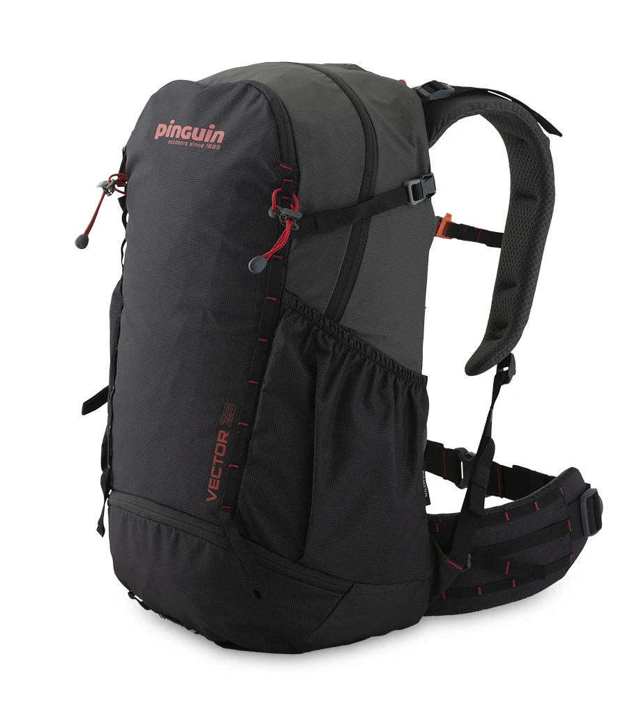 Batoh na turistiku Pinguin Vector 35 - menší batoh do města i na turistiku o objemu 35 litrů. Dvoukomorový batoh s plněním přes zip. Díky plnění přes zip je batoh po otevření přehledný a hodí se hlavně pro městské každodenní užívání.