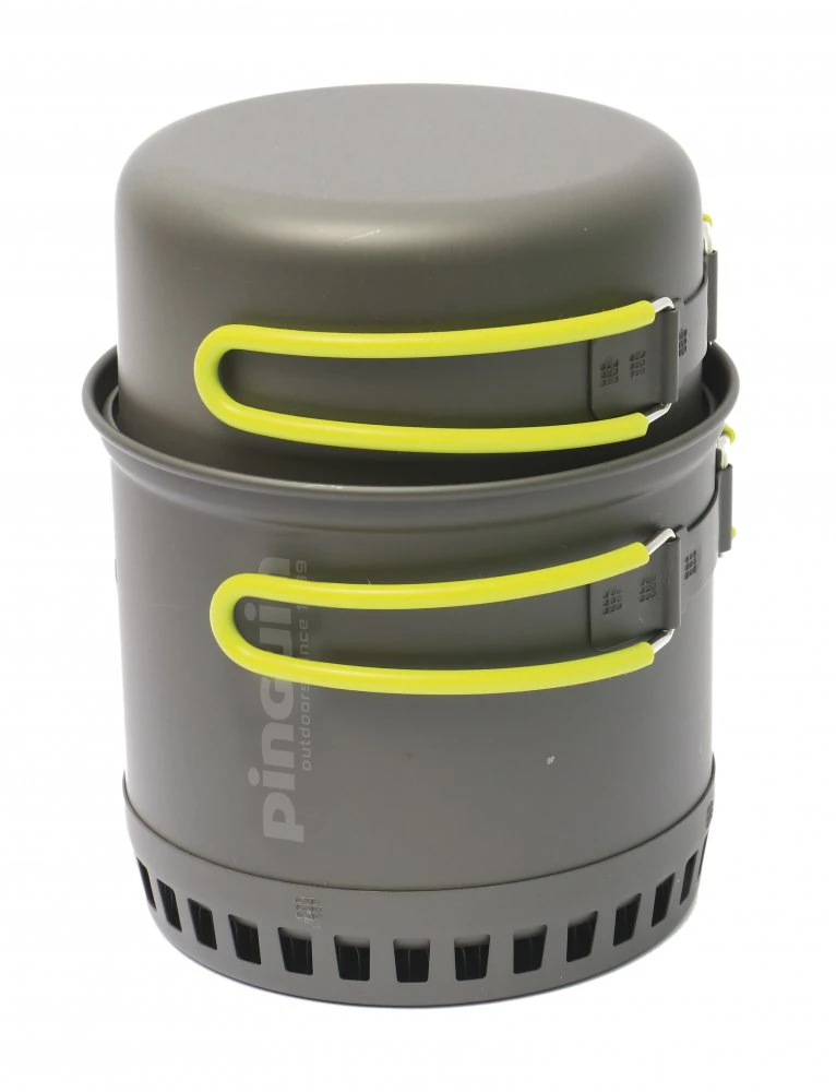 Outdoorové nádobí Pinguin Double X - je outdoorový hrnec pro dvě osoby s objemem 1,125 l vhodný pro vaření při VHT a v expedicích. Hrnec Pinguin Double X má výměník tepla, který urychluje vaření a zároveň šetří palivo. Oceníte jej při přípravě jídel i tavení sněhu. Aby hliník nepřišel do kontaktu s jídlem, je eloxovaný.