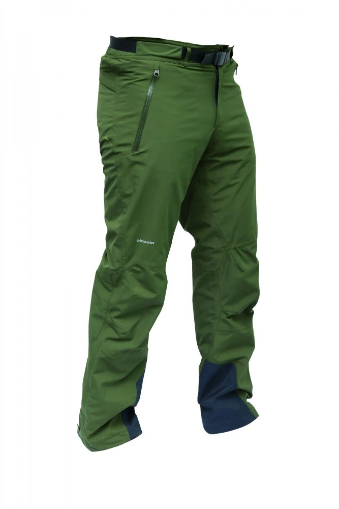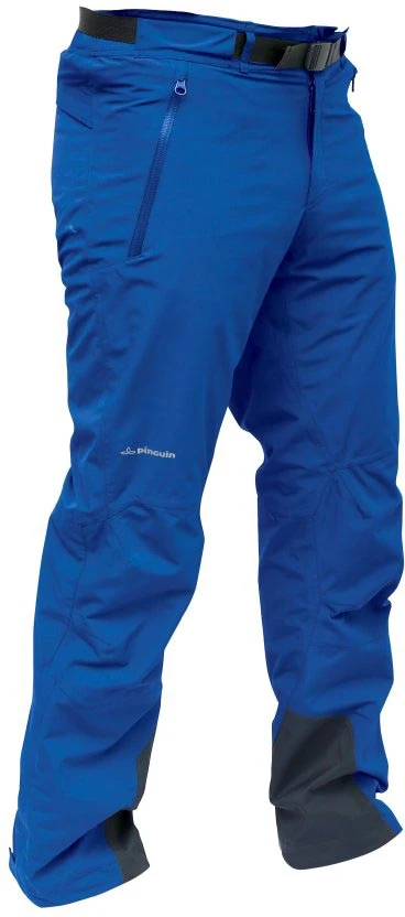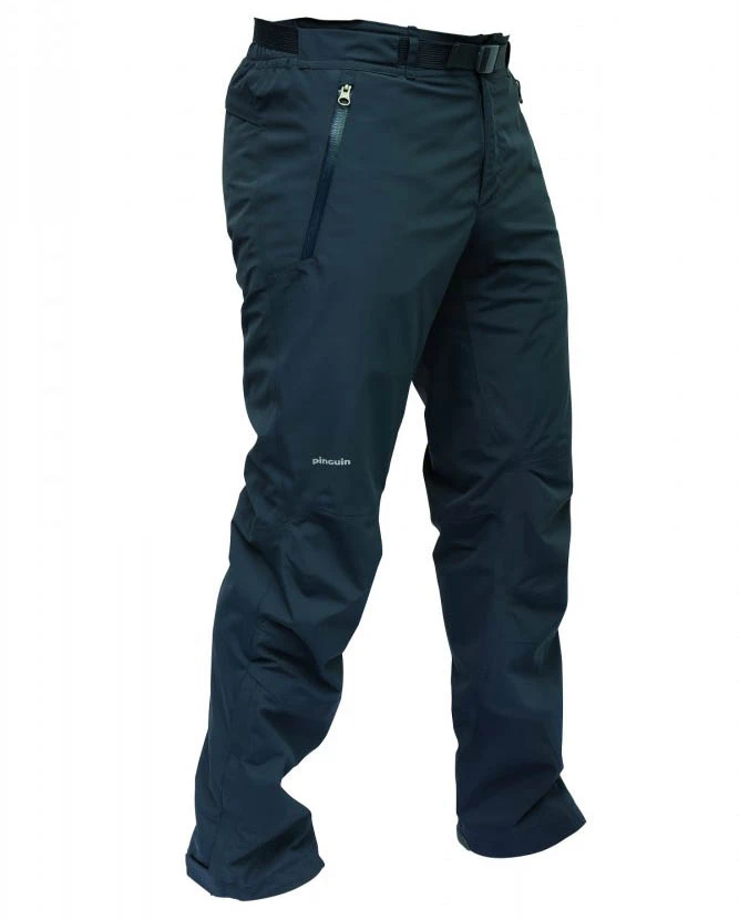 Nepromokavé kalhoty Pinguin Alpin S: nový model velmi oblíbených dobře střižených pánských membránových kalhot z A.C.D. membrane 2L (vodonepropustnost: 20 000 mm vodního sloupce, prodyšnost: 25 000 g/m/24 hod) s přelepenými švy a vyztužené v oblasti kotníků. Rozepínání mají po kolena.