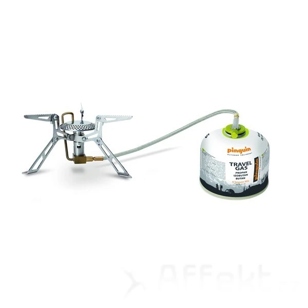 Plynový vařič na kemping Pinguin Mantis - plynový vařič o váze 145 g. Má výhodu v tom, že kartuš je mimo plynový vařič, proto je stabilnější a kromě toho je možné použít kompaktní kartuš o objemu 220 g. Hodí se na turistiku, VHT. Pinguin Mantis má předehřívací trubičku, která usnadňuje hoření za chladného počasí.