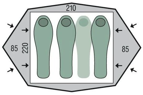 Pinguin Gemini 210: na turistiku pro 3–4 osoby s dvěma vchody a 2 předsíněmi. Je ideální pro rodinnou dovolenou nebo se hodí i pro víkendové aktivity. Má 2 okna, snadno a rychle se staví a odolá i velmi silným poryvům větru. Je vyroben z dostatečně kvalitních materiálů, proto dobře poslouží od jara do podzimu bez potíží mnoho let.