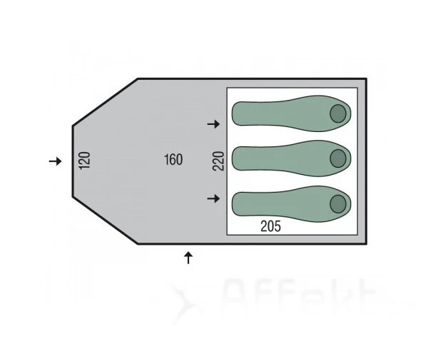 Výška vnitřního (vnějšího) stanu: 130 (135) cm