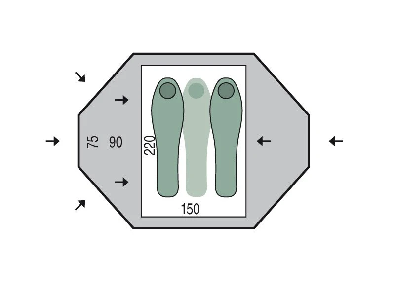 Výška vnitřního (vnějšího) stanu: 115 (124)