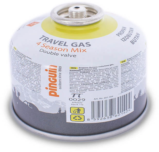 Plynová kartuš Pinguin 110 - jsou vyrobeny z mixu plynů Propan / N-Butan / Izo-Butan v poměru vhodném pro čtyřsezónní použití.