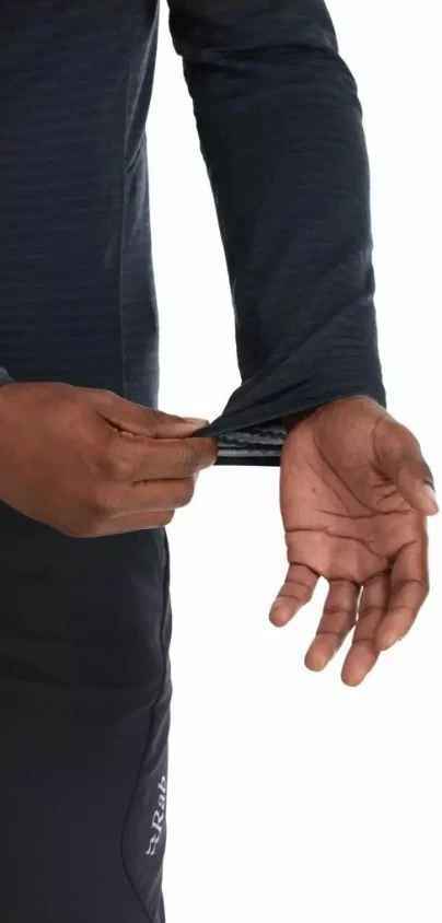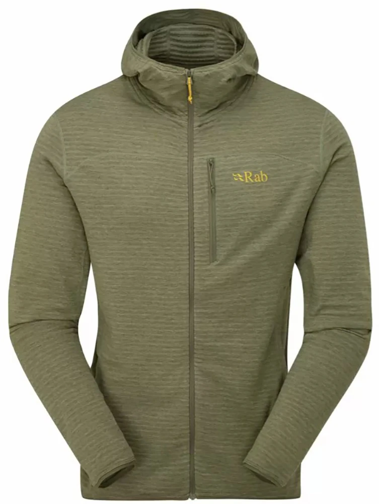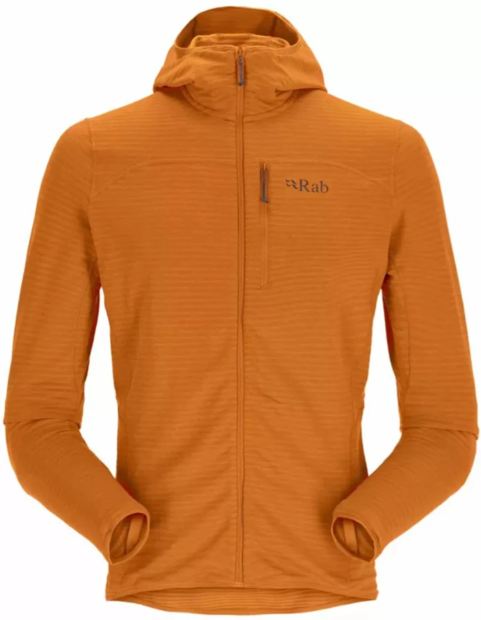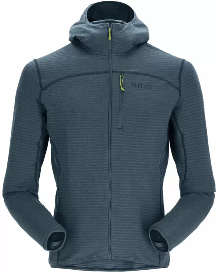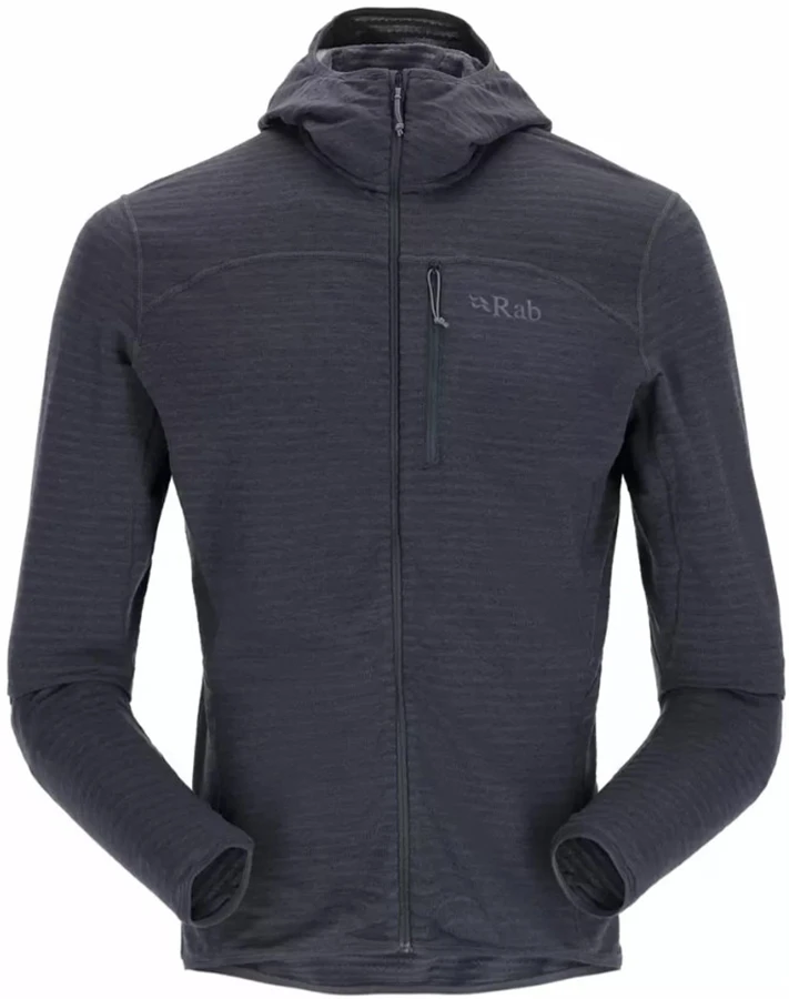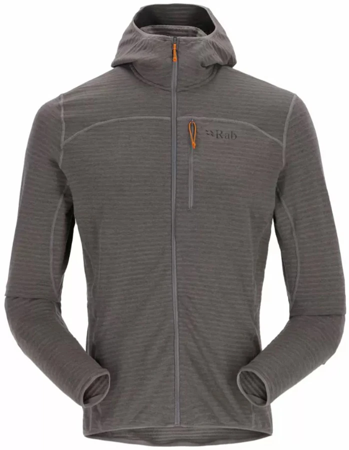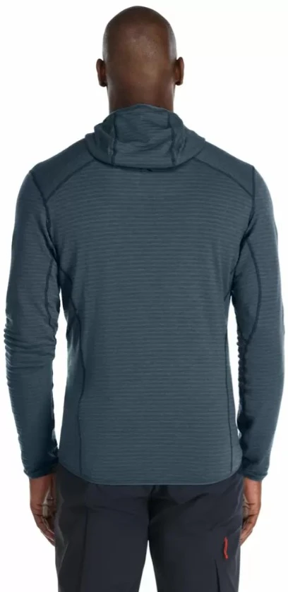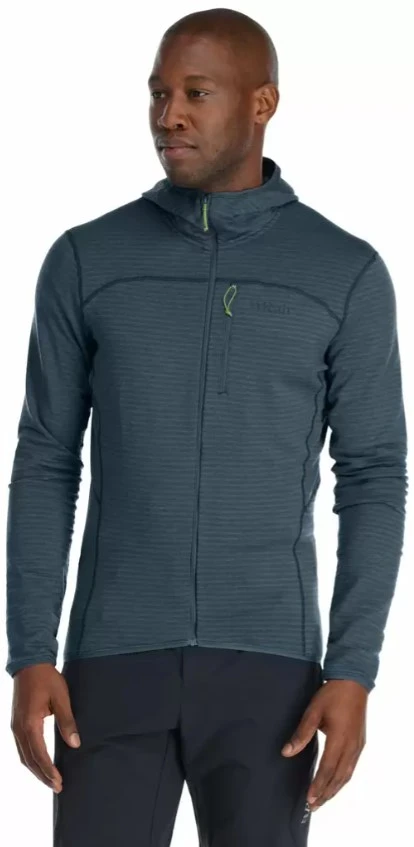 Rab Ascendor Light Hoody: lehká pánská mikina s kapucí vhodná na sporty v chladnějším počasí. Je vyrobena z recyklované strečové tkaniny Thermic™ S, která usnadňuje usychání a zlepšuje prodyšnost. Tento materiál se tak skvěle hodí pro aerobní aktivity v chladnějších podmínkách – zahřeje a díky skvělému odvodu tělesné vlhkosti nás udrží v suchu i při fyzicky náročnějších aktivitách.